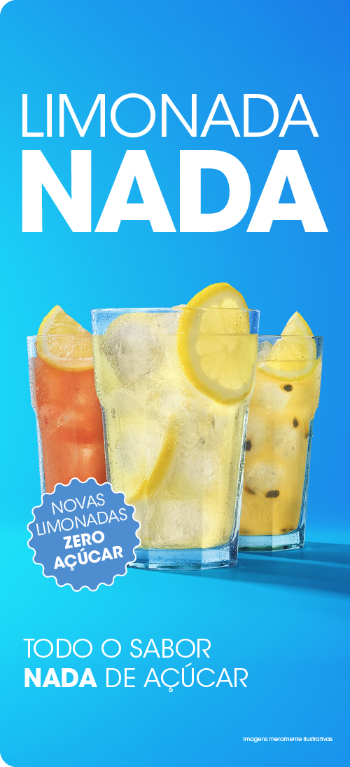 Todo o sabor das limonadas originais (limão, morango e maracujá), agora sem açúcar.